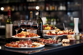 catering services snacks glasses restaurant food drink table setting event party celebration gathering people crowd happy smiling laughing enjoyment pleasure satisfaction refreshment beverage glassware tableware silverware napkins plate dish foodservice wineImagine Buddy