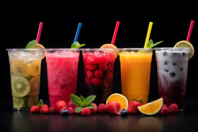 assorted refreshing vibrant colorful delicious thirst quenching healthy summer tropical exotic fruity citrus sweet tart chilled refreshing condensation glasses straws garnishes colorful fruits lime lemon orange pineapple mango strawberry blackberry blueberry mint basil rosemary thyme cocktail mocktail party celebration gathering brunchImagine Buddy
