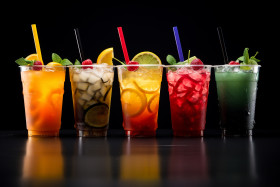 assorted refreshing vibrant colorful delicious thirst quenching healthy summer tropical exotic fruity citrus sweet tart chilled refreshing condensation glasses straws garnishes colorful fruits lime lemon orange pineapple mango strawberry blackberry blueberry mint basil rosemary thyme cocktail mocktail party celebration gathering brunchImagine Buddy