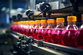 A picture of a conveyor belt in a drink factory where fruit juice is being made, food and drink at home image