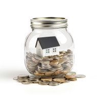 A photo of a investment in real estate saving money to buy a new home with note on white background, home loan stock image