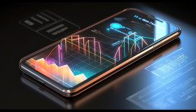 A photo of a phone with a graph on the screen hologram chart, finance stock photo