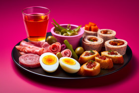 appetizer plate shot drink purple background graphic layout party celebration event food beverage snack cocktail happy hour cheers toast celebrate fun social friends family gathering togetherness enjoyment celebration festivities occasion commemoration observance recognition special drinksImagine Buddy