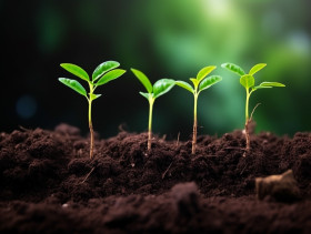 A photo of a green sprouts in dark soil against a blurred background symbolizing the concept of growth and potential, finance stock photo