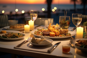 luxury hotel dinner sea view sunset sunrise beach ocean waves coast waves shore seafood steak pasta wine champagne table chairs cutlery glassware food drink dining cuisine gourmet romantic vacation travel holiday honeymoon getaway escape paradise stunning beautiful breathtaking scenic picturesque view panoramicImagine Buddy