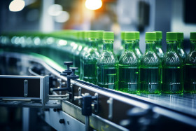beverage factory production line manufacturing herbal drink products conveyor belt glass bottles screw caps healthy drink industry interior machines workers equipment automation hygiene safety quality control packaging shipping labeling marketing branding distribution retail wholesale consumer marketImagine Buddy