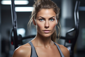 A close up photo of a fit and attractive woman in a gym, indoor sports and leisure activities images