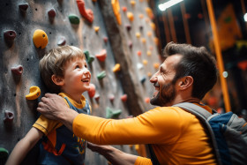 father son climbing indoor gym adventure active bonding childhood cute family fun happiness healthy helmet harness hold indoor joy learn little love man mountain muscle nature new obstacle parenthood play recreation ropes safe sport support teaching together toddler top training wall youngImagine Buddy