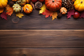 autumn thanksgiving background leaves pumpkins gourds corn acorns nuts berries harvest fall foliage nature outdoors rustic wood seasonal holiday festive grateful thankful blessed abundance feast family friends food togetherness celebration gratitude joy happiness peace loveImagine Buddy