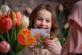 child daughter mother parents family love hug happiness smile flowers tulips postcard congratulations gift mother's day birthday surprise present appreciation gratitude affection bond relationship motherhood childhood parenting happy joy celebration special cherished precious moment memory photo together love you thank you thanksgivingImagine Buddy