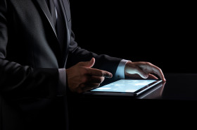 A man points at a tablet computer, seo stock images for marketing campaigns