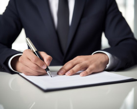 Businessman holding pen in hands while writing, seo stock images for marketing campaigns