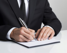 Businessman holding pen in hands while writing, seo stock images for marketing campaigns