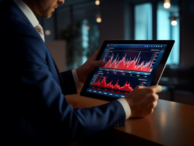 Businessman touching a tablet computer screen with business graphs, seo stock images for marketing campaigns