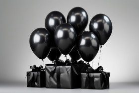 balloons black gift box grey celebration party birthday anniversary holiday special occasion surprise gift wrapping ribbon bow helium balloons latex balloons foil balloons air balloons party decorations festive festive mood happy joyful cheerful surprise gift present wrapped gift black friday black fridayImagine Buddy