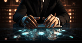 Businessman using a laptop on the desk and using laptop touch interface stock photo, seo stock images for marketing campaigns
