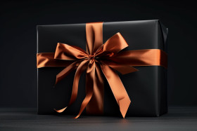 black gift wrap paper bow dark background present box mystery luxury elegant mysterious intrigue surprise celebration special occasion holiday birthday anniversary christmas black fridayImagine Buddy