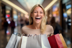 shopping happy woman bags smiling mall shopping spree retail consumerism fashion lifestyle retail therapy spending money impulse buy bargain discount sale new clothes new shoes new accessories happy customer satisfied customer consumer confidence economic recovery retail growth retail market shopping center indoor shopping mall life black fridayImagine Buddy