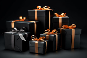 black gifts boxes ribbon background arranged wrapped blackpaper present surprise elegant mystery luxury dark mysterious holiday christmas birthday celebration anniversary surprise occasion special giftgiving thoughtful festive joyous happy cheerful merry excited grateful blessed thankful loved appreciated cherished valued treasured cherished black fridayImagine Buddy