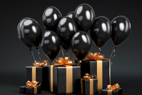 balloons black gift box grey celebration party birthday anniversary holiday special occasion surprise gift wrapping ribbon bow helium balloons latex balloons foil balloons air balloons party decorations festive festive mood happy joyful cheerful surprise gift present wrapped gift black friday black fridayImagine Buddy