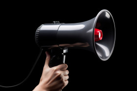 A hand gripping a black megaphone, black friday image