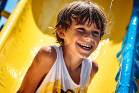 water park water slide children kids fun joy happiness summer vacation holiday family friends swimming sliding splashing wet cool refreshing excitement thrill adventure laughter happy cheerful smiling carefree playful energetic active healthy outdoors outdoorsy nature summertime summertime fun waterslide waterplay waterplay park waterpark waterslides child childhood carefree days happy days summer daysImagine Buddy