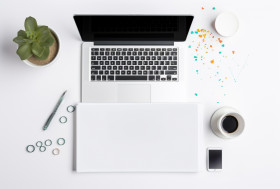 Digital marketing on a white notebook with some graphs on the white background stock photo, seo stock images for marketing campaigns