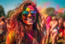 holi festival colors city park summer vacation music girl happy fun joy laughter celebration friendship love color powder gulaal face paint happiness positive vibrant colorful cheerful festive playful energetic youthful carefree happy girl summer vacation park fun music festival holi celebration indian culture tradition vibrant colors happiness and joy colorful life summer vibes carefree days positive energyImagine Buddy