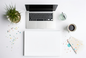 Digital marketing on a white notebook with some graphs on the white background stock photo, seo stock images for marketing campaigns