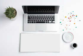 Digital marketing on a white notebook with some graphs on the white background stock photo, seo stock images for marketing campaigns