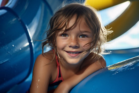 fun water slide aqua park girl preschool child happy splashing swimming laughing summer cool refreshing exciting thrilling adventure play playtime vacation holiday family friends memories childhood innocence carefree joyful exuberant playful energetic carefree water park waterslide preschool girl water play wet and wild aqua funImagine Buddy