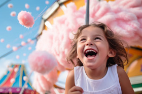 baby girl summer amusement park cotton candy happy joy smile laughter happiness child toddler sweet treat sugary delicious summer vacation leisure entertainment fun excitement joy happiness childhood memories family friends outdoors sunny playful carefree innocent carefree summer days summer vibes summer fun sweet tooth indulgence sugar rush childhood classic fair foodImagine Buddy