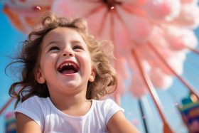 baby girl summer amusement park cotton candy happy joy smile laughter happiness child toddler sweet treat sugary delicious summer vacation leisure entertainment fun excitement joy happiness childhood memories family friends outdoors sunny playful carefree innocent carefree summer days summer vibes summer fun sweet tooth indulgence sugar rush childhood classic fair foodImagine Buddy
