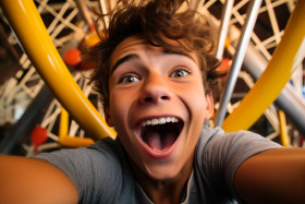 man selfie ferris wheel cabin fun excitement happiness joy thrill ride amusement park carnival travel vacation holiday leisure lifestyle portrait photo photography social media smartphone camera smile laughing energy enthusiasm youth freedom positivity adventure funfair fairground joyride excitement ride thrill ride amusement ride tourism attraction holiday destinationImagine Buddy