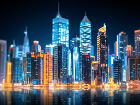 Glowing skyscrapers shape the modern cityscape backdrop, seo stock images for marketing campaigns