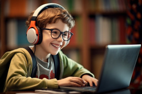 kid boy girl headphones books phone laptop home online class tutor education learning student teacher distance remote learning homeschooling online tutor online learning e-learning virtual learning digital learning technology lifestyle teenagers indoorsImagine Buddy