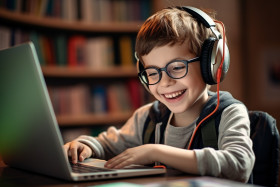 kid boy girl headphones books phone laptop home online class tutor education learning student teacher distance remote learning homeschooling online tutor online learning e-learning virtual learning digital learning technology lifestyle teenagers indoorsImagine Buddy