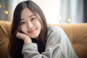teenager asian woman happy smiling looking at camera relax living room home young female portrait person people lifestyle casual comfort cozy relax happy carefree joy cheerful content peaceful serene tranquil calm peaceful domestic leisure time weekend enjoy rest relax homebody comfy home sweet home lifestyle teenagers indoorsImagine Buddy