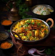 biryani food rice spicy delicious indian cuisine meal dish lunch dinner traditional fragrant basmati chicken lamb beef vegetarian tasty aromatic flavorful festive celebration festivity gourmet recipe cooked saffron curried herbs spices hot steamy yummy mouthwatering served platter authentic homemade takeout illustration imaginebuddy buddyImagine Buddy