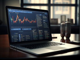 Trading website displaying financial information on a laptop computer, seo stock images for marketing campaigns