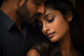 indian husband wife tender moment portrait happy southern asian couple love ethnic india culture concept woman eye hindu traditional family marriage romance passion happiness joy lovebirds newlyweds couple goals relationship goals togetherness forever soulmate soulmate couple soulmate love lifelong love true love eternal love soul connection divine love blessings prosperity happiness abundance fulfillment peace contentment bliss serenity tranquilityImagine Buddy