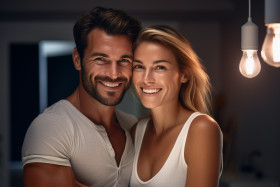 portrait couple indoors love happiness togetherness romance intimacy relationship marriage family bond connection emotion expression happy romantic in love smiling close together united couple goals lovebirds soulmate forever happily ever after bliss joy harmony serenity contentment peace tranquility calm warmth light love story fairytale dream come true perfect moment memoriesImagine Buddy