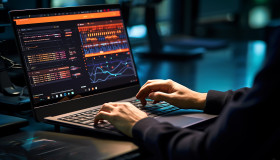 Typing on laptop using wireless technology indoors, seo stock images for marketing campaigns