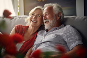 Happy older couple relaxing at home