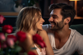 love young couple romantic smiling cheerful sitting together living room home happy joy happiness affection happiness relationship trust commitment romance cuddling kissing hugging laughing smiling happy joyful warm intimate couple goalsImagine Buddy