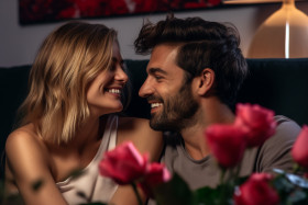 love young couple romantic smiling cheerful sitting together living room home happy joy happiness affection happiness relationship trust commitment romance cuddling kissing hugging laughing smiling happy joyful warm intimate couple goalsImagine Buddy
