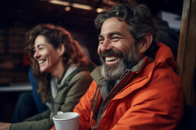 couple hispanic middle-aged smiling happy coffee morning breakfast kitchen kitchen table window sunlight home love relationship together family happy marriage lifestyle mature adult senior retirement enjoyment relaxation contentment leisure coffee lover caffeine mug cup steam aroma warm cozy comfortable happy home domestic bliss couple goals romantic loving affectionate happy lifeImagine Buddy
