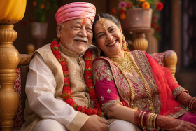 happy indian senior couple ethnic wear love happiness together forever family grandparents elders wise tradition culture heritage saree dhoti kurta shawl dupatta turban jewelry smile laughter joy peace contentment harmony lovebirds soulmate companionship retirement golden years blissful blessed grateful life journey memories heritageImagine Buddy