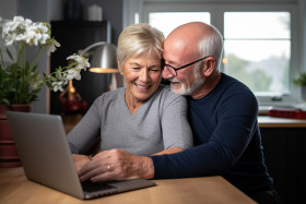 couple mature laptop internet home embrace love happy family together technology senior smile relax bonding affection comfort romantic browsing surfing browsing shopping banking working learning leisure entertainment communication connection relationship lifestyle happiness joy comfort peace lovebirds soulmate companion partner best friend digital world online lifeImagine Buddy