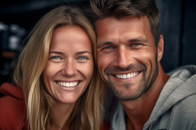 Joyful couple smiles for the camera